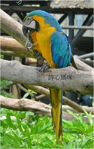 好鮮艷亮眼的藍黃金剛鸚鵡啊!