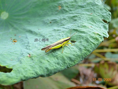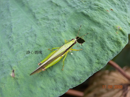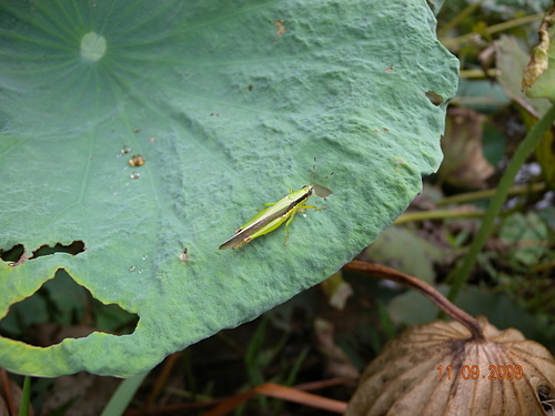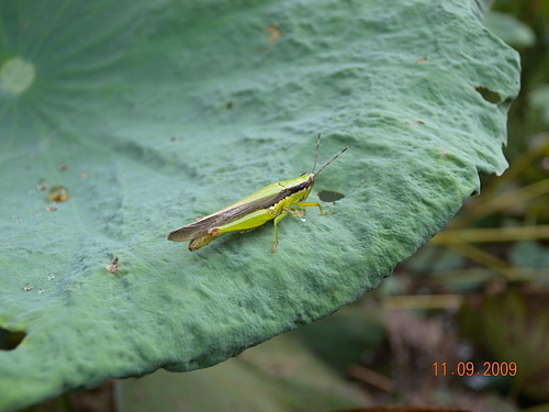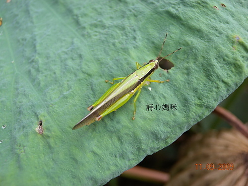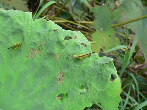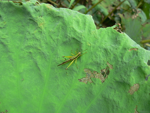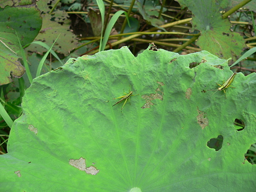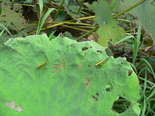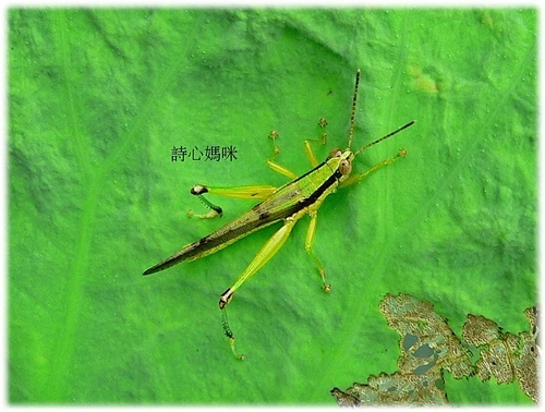 本種分布於平地至低海拔山區,常見於水芋葉面啃食,寄主較專一,近似種台灣稻蝗體型較寬大,前翅只達腹端,本種翅長超過腹部,末端尖狹,數量較少見。