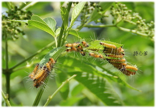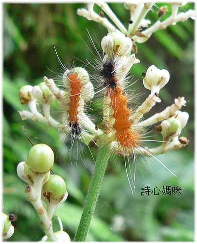 幼蟲各齡期斑型不同,終齡鬃毛呈紅、黑兩色,寄主蕨葉、血桐、構樹、小葉桑、密花苧麻等植物,為廣食性蛾類。