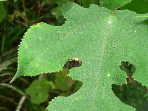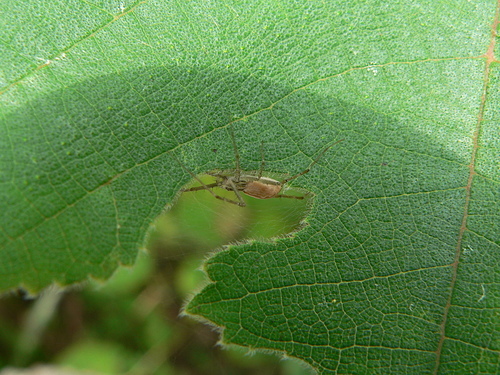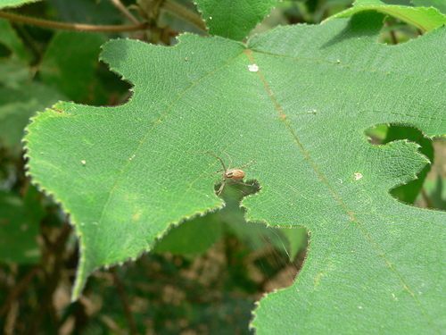 生活於低海拔山區之樹林或草叢環境,常見棲息於五節芒葉背,有些個體會於葉面的洞口內截簡單的網棲息。