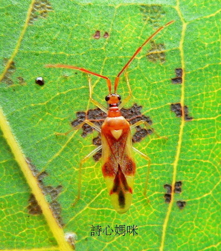 我在嘉義縣南靖糖廠有拍攝到體色鮮艷漂亮的斑頸曼盲椿。