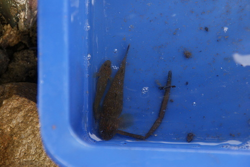 自宜蘭到南投的河流都普遍可見,適應力強,體色呈暗橙色或棕色,部份個體體側有 6 ~ 7 塊斑紋,腹都灰色,抱卵雌魚為暗藍色,頰部自眼球前方伸出兩條紅色紋,雄魚的紅紋較雌魚短,但吻部較為寬長,雌魚胸鰭基部有一暗色斑,雄魚此斑不顯或缺乏。