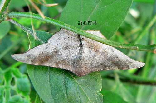 成蟲黑褐色,前翅頂角細長鉤狀,雌雄外觀近似,唯雌蛾體型較肥胖,且前翅鉤狀明顯。