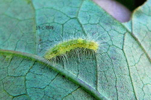 甘藷白鳥羽蛾幼蟲淡綠色,體背密生白色長毛。