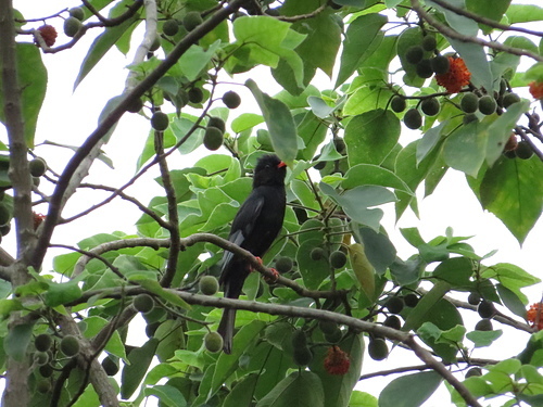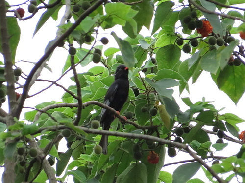 紅嘴黑鵯 啄食吃構樹紅漿果