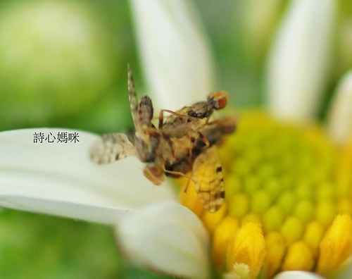 三隻長鞘寬頭實蠅正在這裡上演搶親記~!