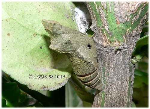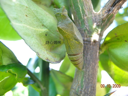 自9月30日發現野外天然生成的無尾鳳蝶的綠蛹,我便日日會去觀察變化。