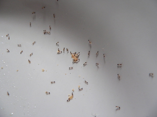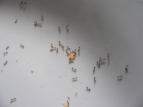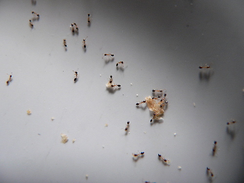 沒一會兒功夫,就出現一大群小工蟻來搬土司屑。