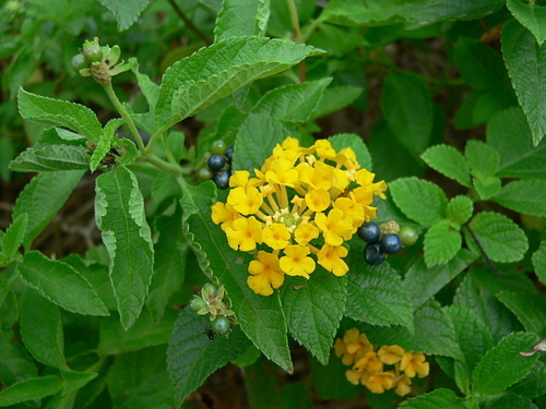 馬纓丹屬馬鞭草科常綠灌木,原產熱帶美洲,最初約於西元1645年間由荷蘭人引進,近年因國民喜好園藝人數日增,再引進數種新品種。花色有黃、白、橙、紅、粉紅等。花冠初期至凋謝顏色變化多端,故又名五色梅。喜乾燥陽光充足之處,雖為外來種,但已馴化。葉有刺激性臭味且耐旱、耐熱、少病蟲害又不怕污染的空氣,為美化市容的重要植物之一。花多且花期長,又為蝴蝶的重要蜜源植物。