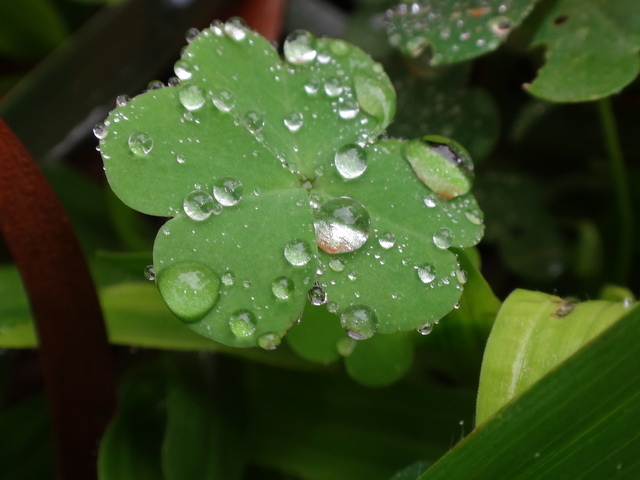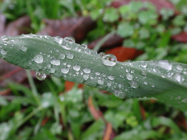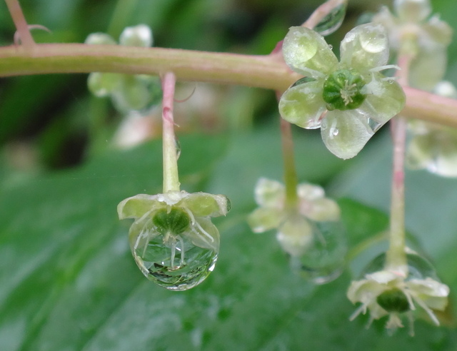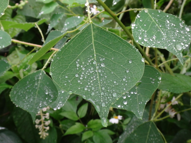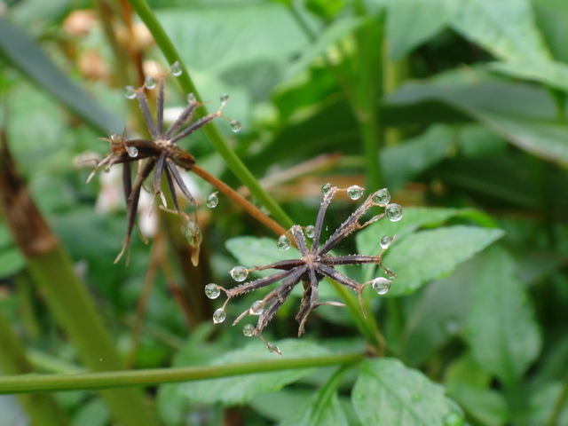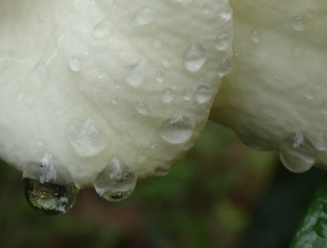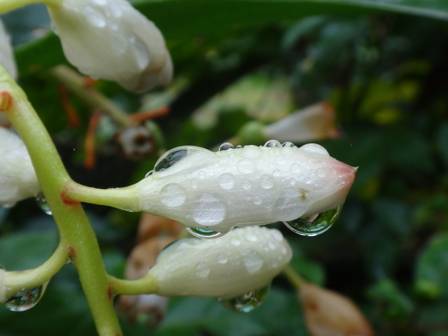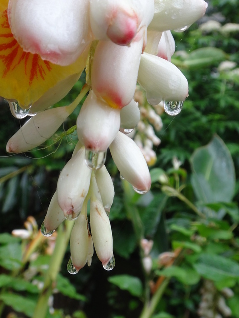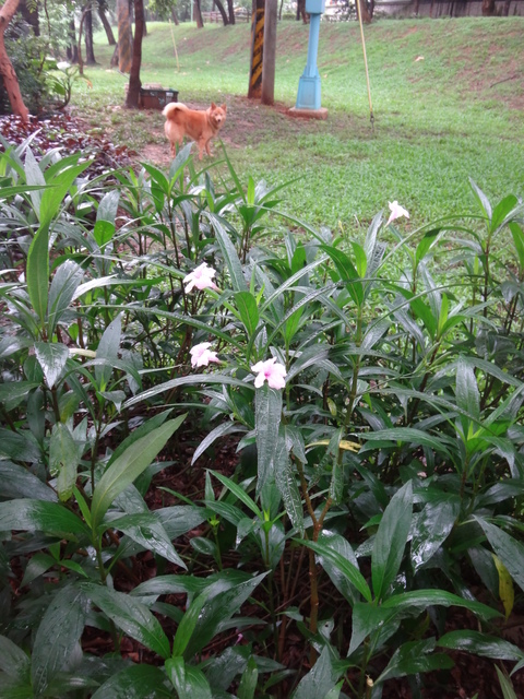 雨勢稍歇的公園,處處可見植物花朵和雨珠之戀的痕跡。