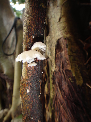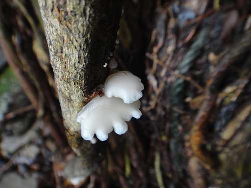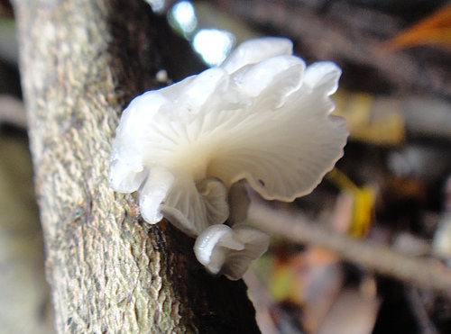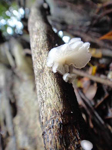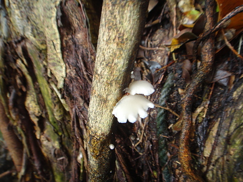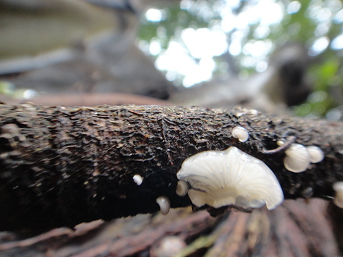 腎形亞側耳色澤通常為灰褐色,該種野菇也是木棲腐生的小菇類。