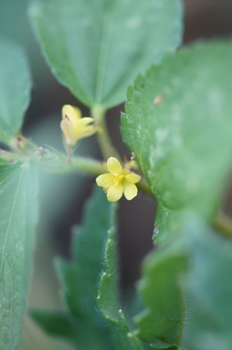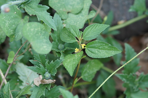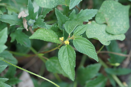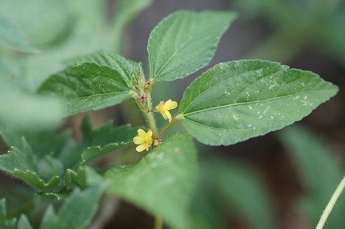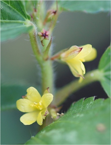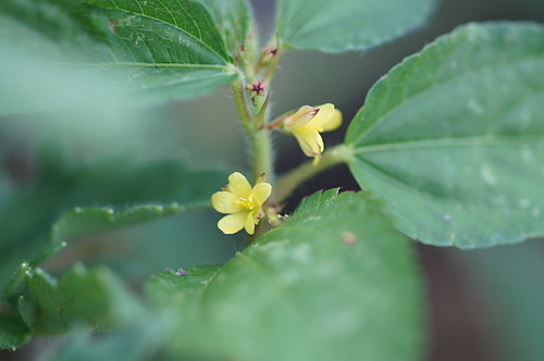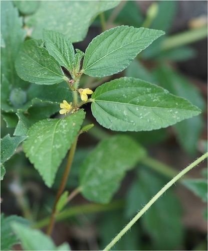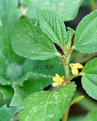 繩黃麻 一年生草本;莖直立或匍匐的,淡紅褐色,多分枝,疏被毛。葉互生,紙質,卵形、寬卵形或狹卵形,長2.5-8 cm,寬2.5-5.5