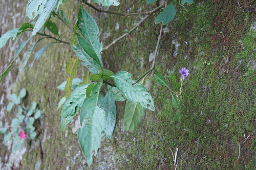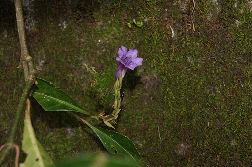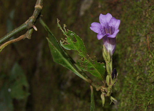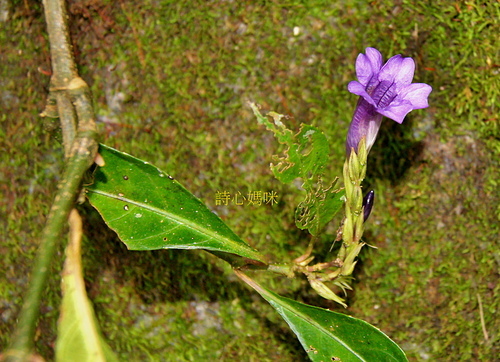 公分,先端銳或漸尖,基部楔形,疏鋸齒緣。花頂生或腋生,花萼 5 裂,裂片不等形,線狀,花冠淡紫色至白色,2.5~3 公分長,5 裂,裂片略不等形。蒴果線狀,長約