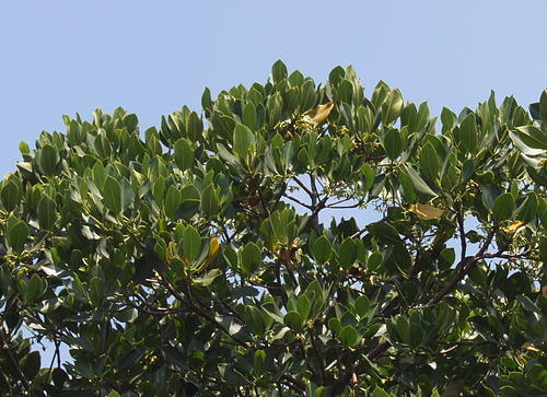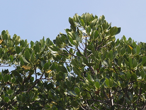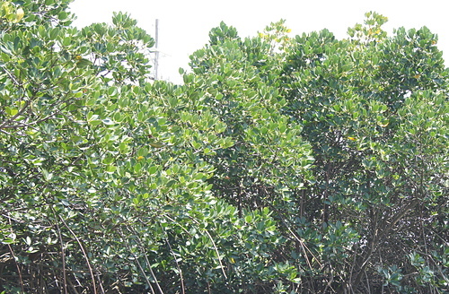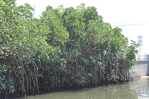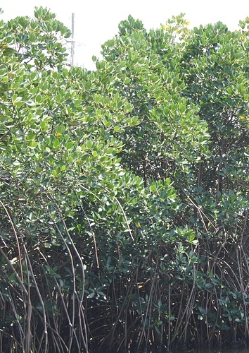 紅海欖 常綠小喬木,高3~10公尺,生長於塭邊,河口海灣潟湖軟泥地,為典型的紅樹林植物,是目前台灣紅樹林中的稀有種,只生長在南台灣,大部分集中在台南四鯤鯓及四草附近的濕地區。
