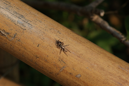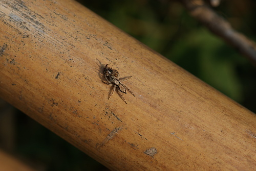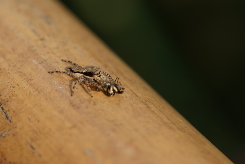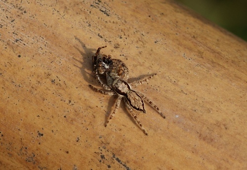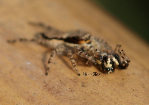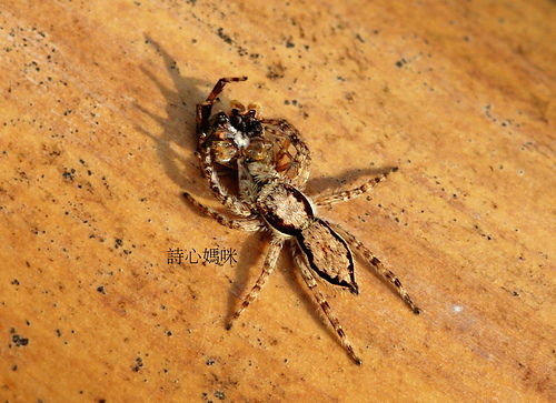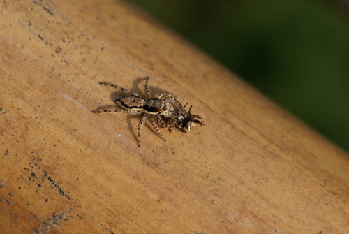 雙帶扁蠅虎(雌) 補食眼鏡黑條蠅虎(雄)