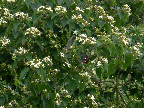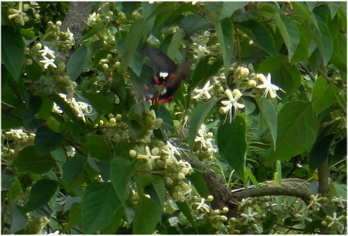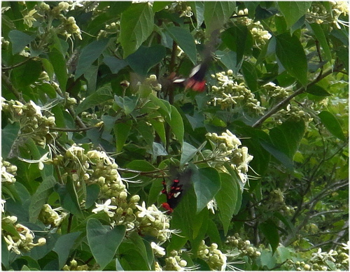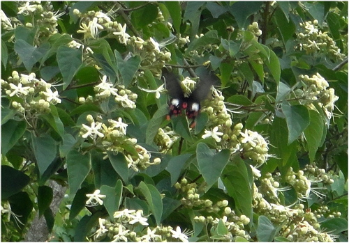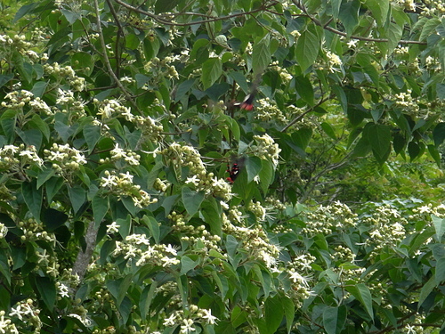 海州常山 吸引二隻大紅紋鳳蝶訪花