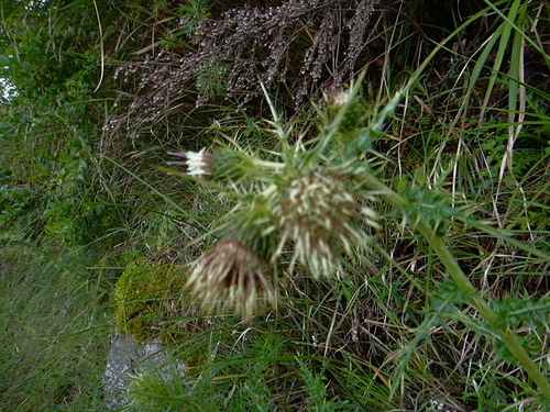 玉山薊花期較長,在七月上旬至九月中旬開花。頭狀花 15~30 枚,長於枝條先端,呈總狀花序排列,為淡褐色或黃色;總苞非常顯著,總苞片反捲,為鐘形、有柔毛,具苞片 6~7 列,內、外列的苞片都小,中生的苞片最大,為卵形或闊卵形,先端銳尖;無舌狀花,管狀花為兩性,花冠 5 裂,裂片呈三角形,長 0.2~0.3 公分,先端銳尖。