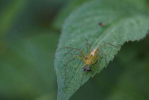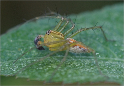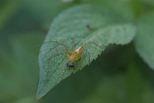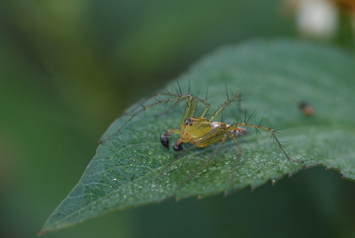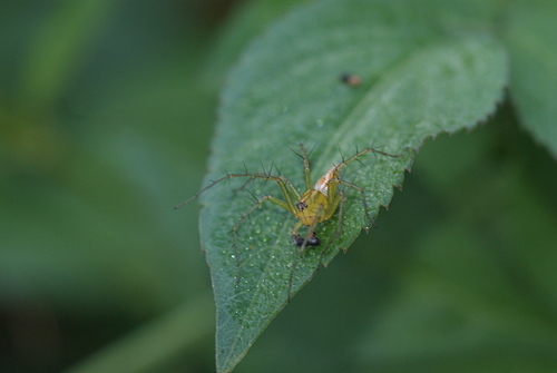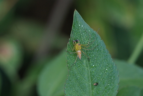 斜紋貓蛛(雄) - 虎耳草上綠褐蜘蛛 96.3.30 攝於 左鄰花圃