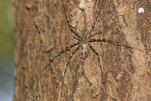 條紋長疣蛛 (墨綠色) 雌補食 (第五次) 100.9.4 攝於 社區小公園 樟樹