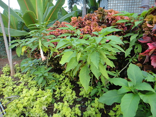 異色花曼陀羅(Datura versicolor. Saff.),剛開花時是白的,大約1天左 右會變成