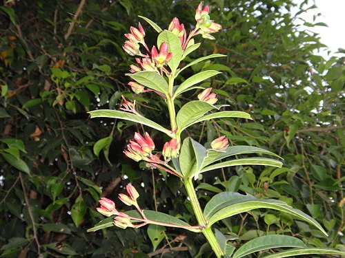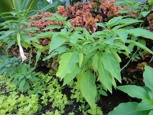 如: 洋金花、蒲瓜樹、四葉蘿芙木 、赤苞花 、胭脂樹 、異色花曼陀羅 、油甘 。