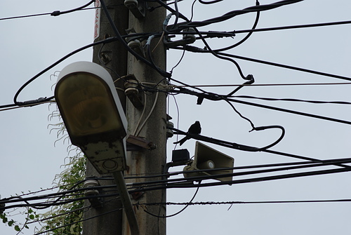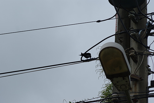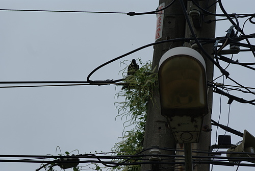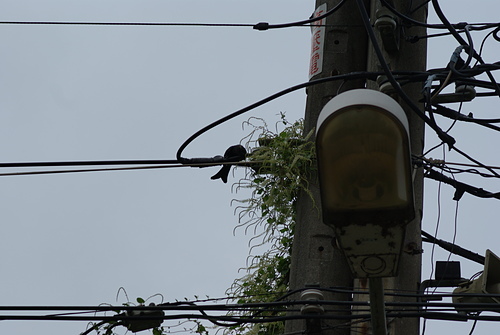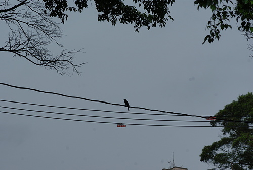 高壓電纜線附近都可見紅標語『有電勿近』,然而大卷尾才不怕呢!