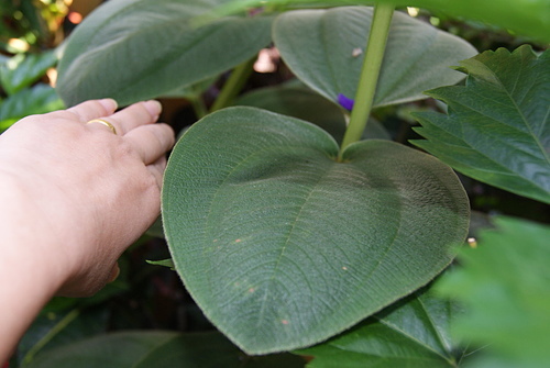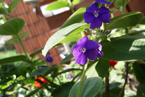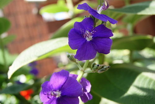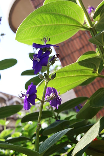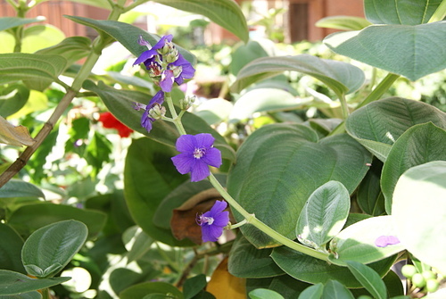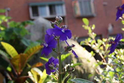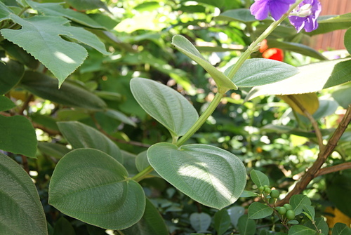 銀絨野牡丹在野牡丹科中算是比較特殊的一種花卉,有幾個特色:1.植株叢生,蔓莖會四處延伸。2.葉形寬卵形,葉的兩面密生銀白色絨毛,落葉前葉片變成橙紅色,非常耀眼。3.花呈頂生穗狀花序,花朵在幾個常見的野牡丹中最小,約 3~3.5 公分而已。