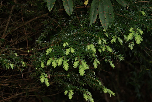 5-6月開花,雄花毬與雌花毬生長於枝條腋上或頂端,每一朵雄花的下方都帶有二個花粉囊,帶有二個泡翅的黃色花粉隨風飄散,飄落在紫色的雌花毬上,受了孕的雌花毬將鱗片關起來,變成毬果。