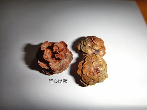 毬果慢慢長大後顏色由紫色轉為褐色,褐色的果鱗上有美麗的縱紋,果鱗一片疊著一片,交疊出最美的姿態,每一片果鱗中有2個種子。毬果長約1.5-3公分,是採下垂的姿勢,與直立式的台灣冷杉大不相同。成熟時,若遇好天氣,毬果便將果鱗一片一片張開來,讓帶有翅膀的種子隨風飄揚,找尋自己的新天地,而果鱗則是繼續宿存在枝條上。