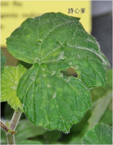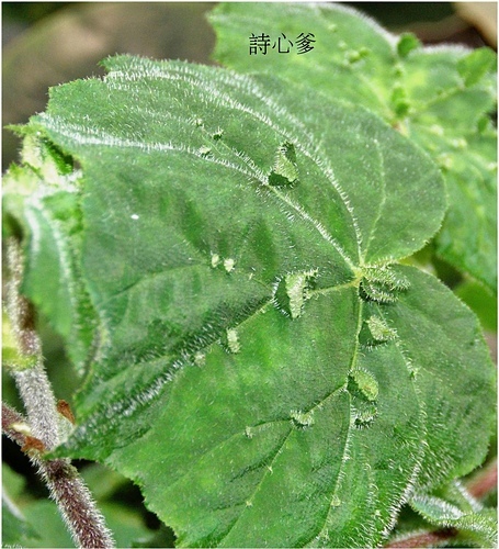 葉長葉秋海棠 別具特色的便是:佈滿毛的葉片上,長出許多直立的小葉子。