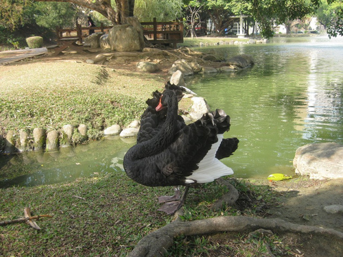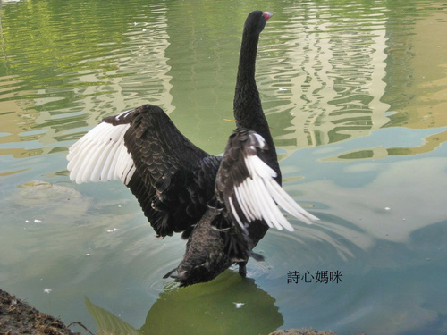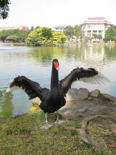 然而長女二度回母校取鏡,卻都無法拍到二隻黑天鵝卿卿我我、常相隨的情況,真奇怪~?