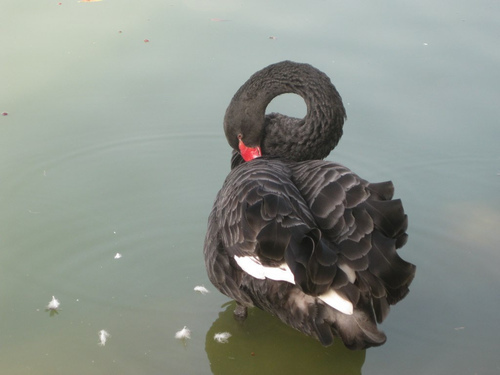 黑天鵝有著一排白色的發翔羽