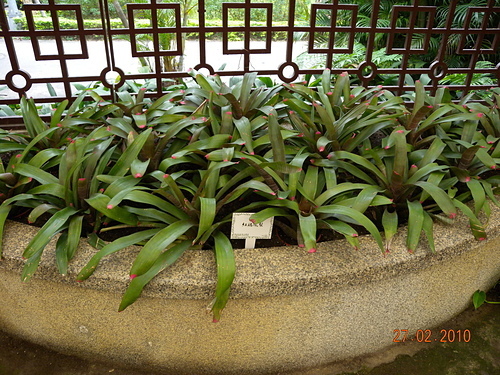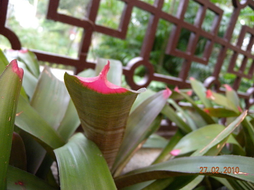端紅鳳梨是一種積水鳳梨,植株中間的水杯,可以讓它渡過乾旱季節。