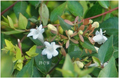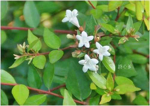 大花六道木為糯米條(Abelia chinensis)與單花六道木(Abelia uniflora)的雜交種。