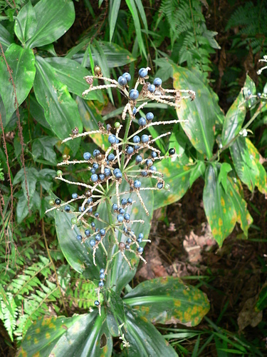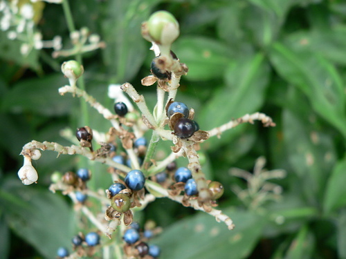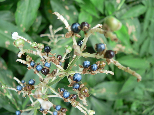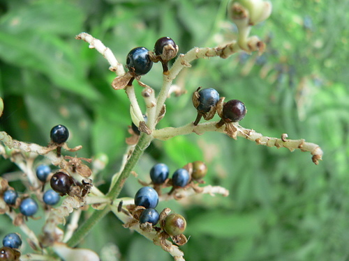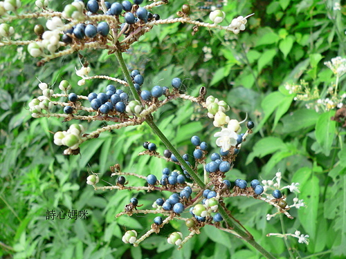 蒴果球形,直徑約 0.5-0.7 公分,三室,每室具5-8種子,熟果藍黑色。