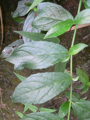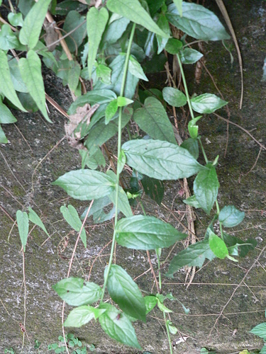 生長在低海拔向陽山坡、林緣之多年生小灌木或攀岩懸垂性蔓狀草本。枝條細長,蔓性,蔓狀莖平滑,有縱溝,之字形曲折。葉互生,微革質,長橢圓形,葉基楔形,柄短,葉面綠色,葉背蒼灰白色,兩面有微毛。