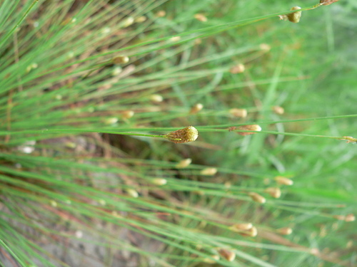 一年生或多年生草本,稈多數,叢生,直立或微彎,長 5~25公分,寬0.2~0.4mm,小穗頂生,球形或卵形,長3~5mm,寬3.5mm,淡鐵鏽色,先端漸尖。