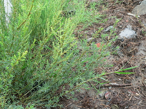 枝梢葉腋萌發黃綠色花,小苞片3枚,披針形,花被5枚,橢圓形,穗狀花序。
