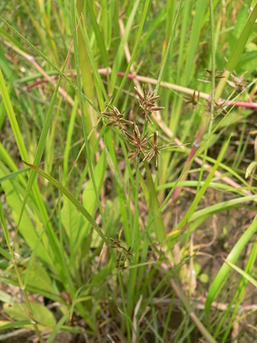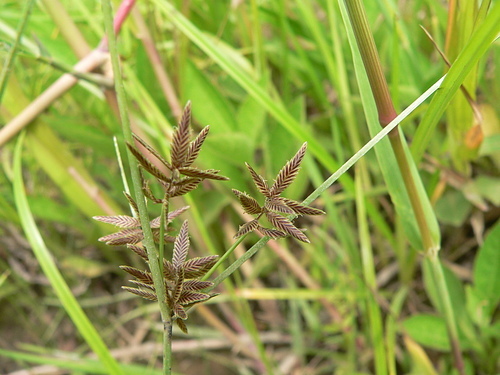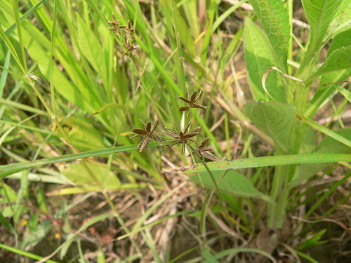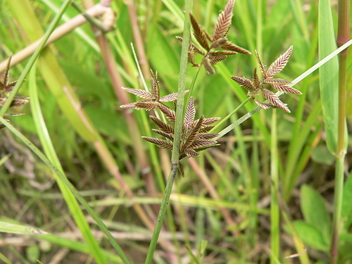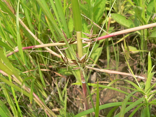 多年生挺水草本,高20~40 cm。葉叢生,線形,長10~20 cm,寬2 mm。聚繖花序頂生,小穗披針形,長0.6~2 cm。瘦果倒披針形,長1~1.2 mm,紅褐色。