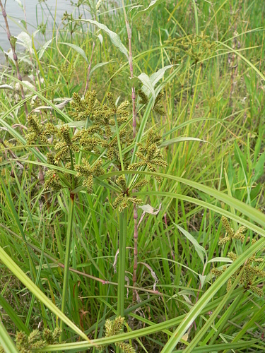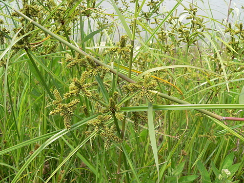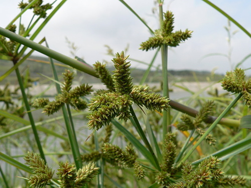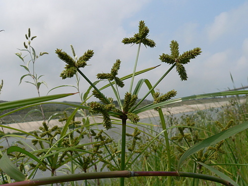 多年生莎草科挺水植物,因為開花時小穗軸上密生小穗,形成像瓦片狀重複的疊蓋形狀,此即為「覆瓦狀莎草」。