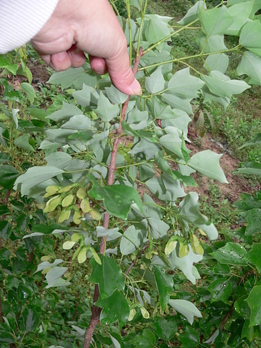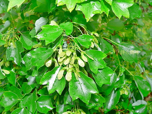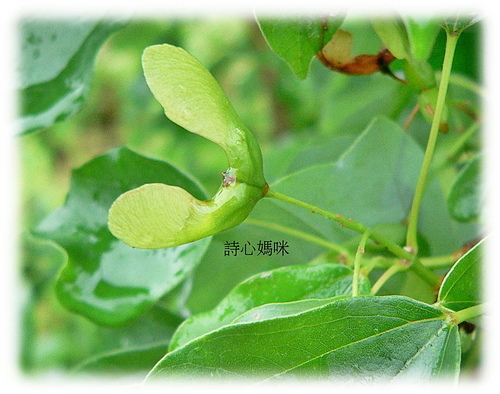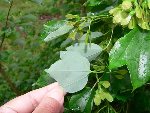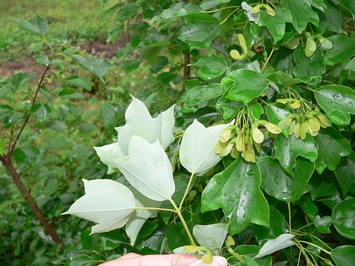 圓錐花序,5單瓣,黃白花,開花後隨即結出成對之翅果。果色黃綠,翅果成水平展開。