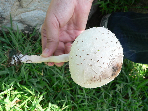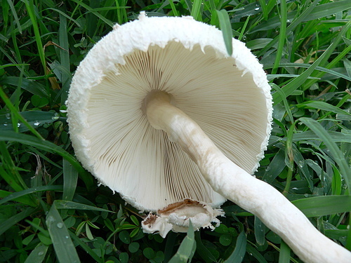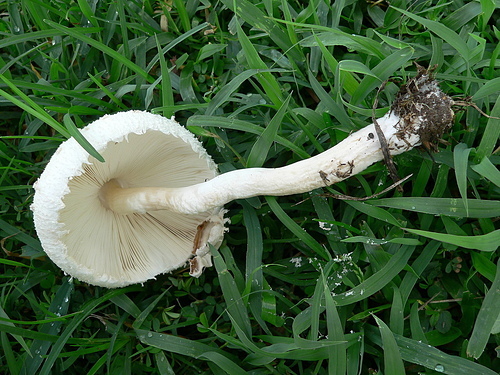 此外本菌之菌柄,長可達12~30公分,初白色後呈褐色,表面有纖維紋,頂端則具厚且可移動之菌環。生態習性:本菌為單生至群生性之腐生菌。應用:為毒蕈,誤食後引起腸胃炎型中毒症狀。