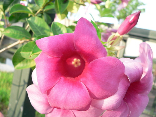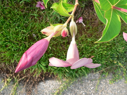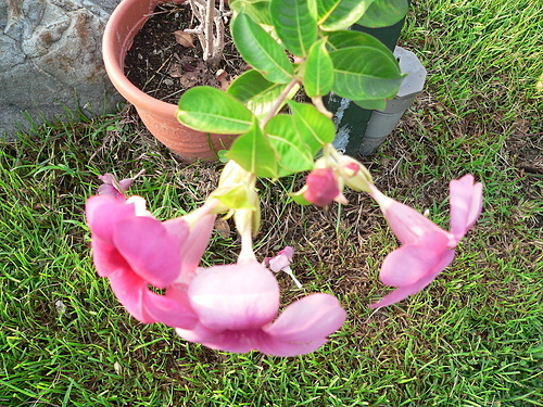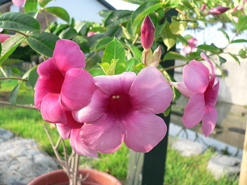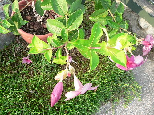 春末至秋季開花,花期長達3~4個月。形似漏斗的花朵,花色淡紫紅色,嬌柔艷麗,柔美悅目。適合大型盆栽、圍籬或小花棚美化。因枝條伸展有限,生長攀援性不強,所以不適宜花架蔭棚栽培。