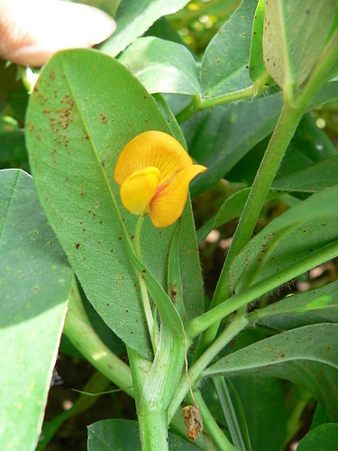 落花生(Arachis hypogaea L.)又叫“花生”,因其開花後,子房柄伸長入土中,發育成莢果的特性,故一般又稱為“土豆”。