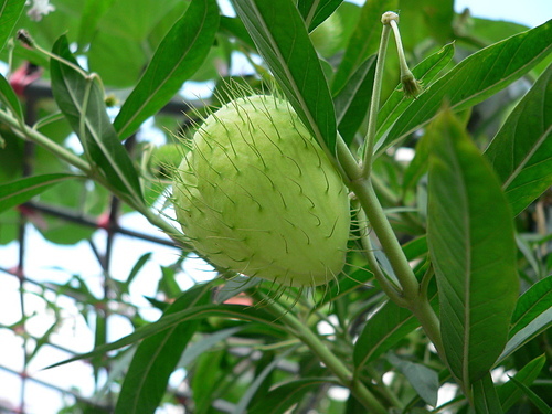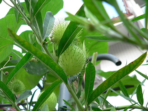 唐棉大大的綠蒴果,是頗受歡迎的一種切花。