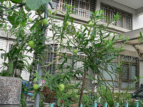 總算觀察到它由花苞到開花,由小綠果變大大的汽球果實。真是愈瞧愈可愛!