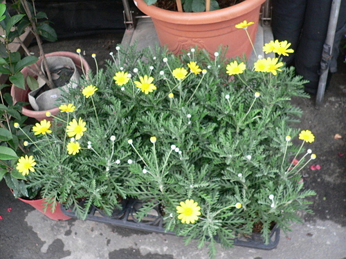 本屬還有較早引進的「情人菊Euryops chrysanthemoides」,相較之下本種枝葉更加緻密美觀。