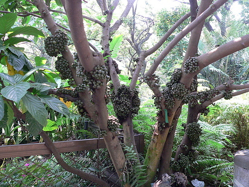 水同木適合生長在較潮溼的環境,因此在山溝的環境中數量頗多,具有熱帶氣息的幹生花現象,隱頭果幹生。熟時橙紅色,又稱為『大有』或『豬母乳』。「有」字在字義上有鬆脆的意思,在此指的是樹枝的材質鬆脆富含水分。豬母乳的由來是因其隱花果生長在樹幹下部呈下垂狀,有時延伸至根部,結實累累看起來就像母豬乳房一般,故名。