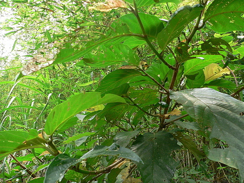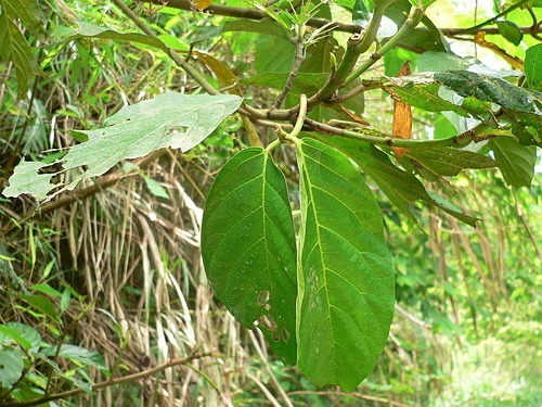 桑科榕屬的喬木,樹皮黑褐色,全株帶短剛毛,嫩葉略帶紅色,長成後變成深綠色。莖較粗大肥厚,有淡黃色乳汁,小枝有茸毛,略為中空。葉互生,厚紙質,表面光滑,背面有微毛,呈倒卵形或長橢圓形,波緣或全緣,葉片較其它榕樹大,長約二十公分。托葉卵狀披針形,早落性。