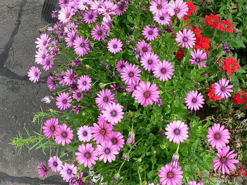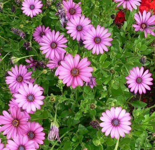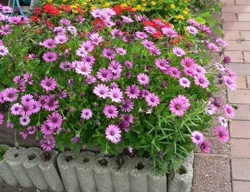 在溫和的溫度下可週年生長,花在春天盛開,花色鮮艷奪目,有粉紅、玫瑰紅、紫及白色四種顏色,其中心筒狀花呈現蔚藍色,非常醒目。